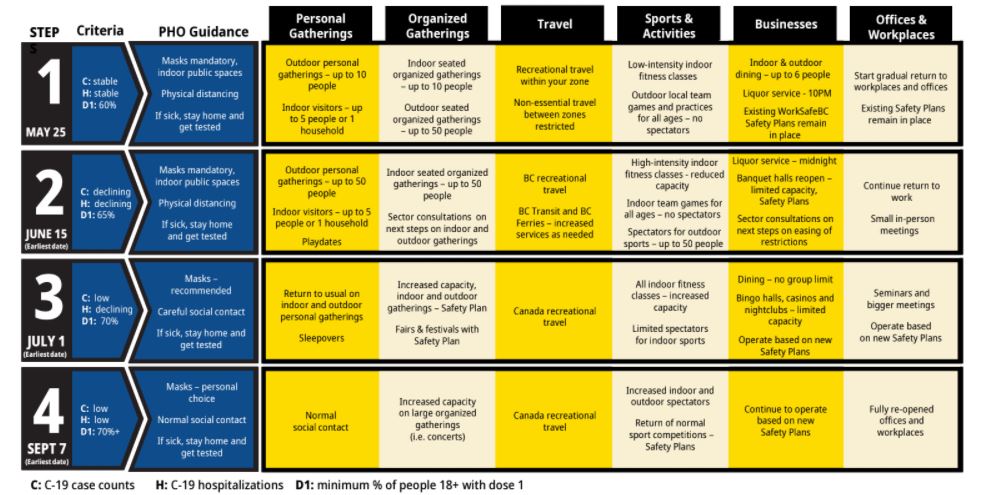 Bc Reopening Plan / Great News Premier John Horgan On Bc S Reopening Plan Coast Reporter : Develop a reopening implementation plan.. Eye doctors had planned to celebrate 2020 as the year of vision (as in seeing 20/20). Virtual instruction for all students will continue for six weeks through friday, october 16, 2020. British columbia's reopening begins this week, and with the easing of pandemic restrictions comes new expectations for residents and businesses to comply with myriad safety measures. The university is using the best science and public health information available to protect members of the campus community; The bc government has officially announced its timeline to reopen sectors throughout the province in what has been dubbed bc restart plan, the province said it will work closely with public health.